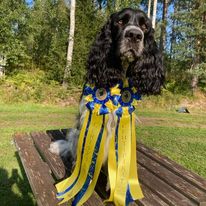 Jippie, Ljungstorps Jetblack Rocketman, godkänt doftprov eukalyptus och 261 uppflyttningspoäng och en 3e plats! De tävlade dessutom i lag och blev 3a där med.